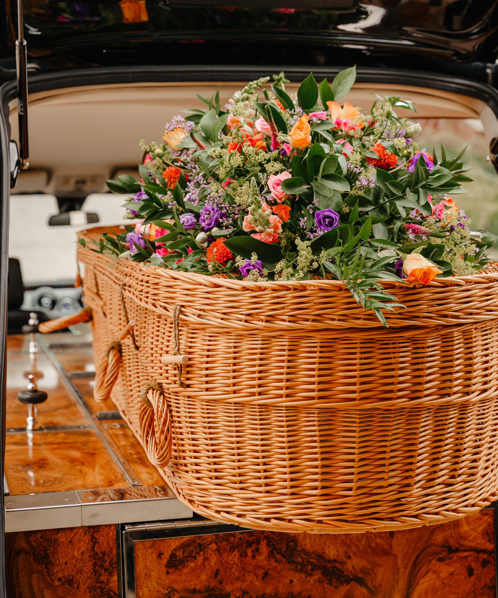 We offer a wide range of coffins from traditional wood to biodegradable options including willow, seagrass, bamboo, and cardboard. For environmentally conscious families, we can arrange eco-friendly funerals with natural burial options. Nearly every coffin can be personalised with nameplates, handles, and interior linings to suit your preferences. Our team will show you the options available and help you choose what feels right.
